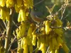 The Silver Eye seeks out sweet nectar amongst the flowers of the Kowhai.
